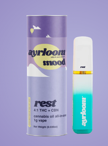 The Ayrloom AIO Rest 1g vape pen delivers a carefully crafted cannabis experience designed to help you unwind and find your peaceful center. This premium all-in-one vaporizer features a harmonious blend of earthy and floral aromatic notes that create a naturally grounding sensation, perfect for those seeking stress relief and tranquil moments.