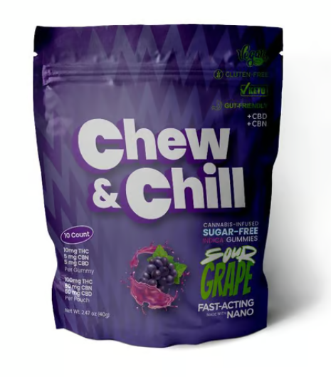 Experience pure bliss with Happy Munkey's Sour Grape Chew & Chill gummies, expertly crafted to deliver a perfect harmony of flavor and relaxation. These premium live resin gummies blend 10mg THC, 5mg CBN, and 5mg CBD per piece, totaling a potent 100mg THC per package. The mouthwatering sour grape flavor creates an irresistible taste sensation that perfectly masks the botanical notes.