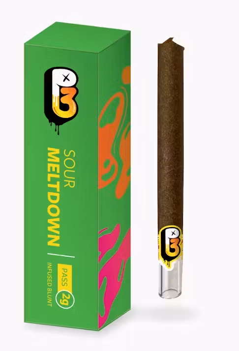 Game for something new? Check out P3’s Sour Meltdown Infused Blunt. This hybrid infused blunt is the perfect combo of Meltdown cannabis flower with cannabis derived distillate featuring sour lemon terpenes. Pre-rolled in hemp wrap and featuring a glass tip filter, P3 Infused Blunts are perfect to pass around.