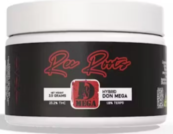 Don Mega is an evenly balanced hybrid strain (50% indica/50% sativa) created through crossing the powerful GMO X Black Banana strains. A favorite among hybrid lovers, The Don Mega packs a full-bodied high with a heavy THC level. This bud has a sour and citrusy chemical flavor with a spicy cheesy exhale. The aroma is very similar, with a spicy and earthy overtone that turns pungent and dank with a punch of sour citrus the more that you toke.