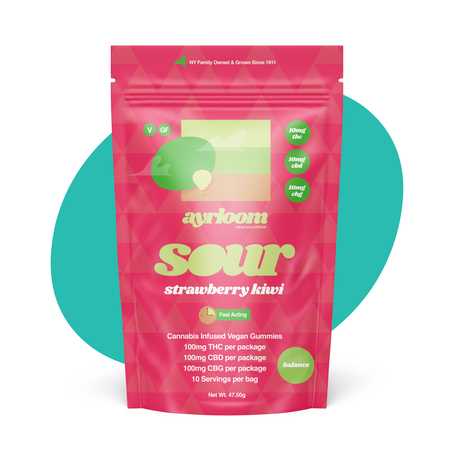Experience pure delight with Ayrloom's Sour Strawberry Kiwi gummies where each perfectly dosed piece delivers a harmonious blend of 10mg THC 10mg CBD and 10mg CBG. These mouthwatering treats combine the sweet succulence of ripe strawberries with the tangy zest of fresh kiwi creating an irresistible flavor profile that'll transport your taste buds to a tropical paradise.Crafted with precision and care these premium gummies offer a balanced experience with their unique 1:1:1 ratio of cannabinoids. Each package contains 10 pieces totaling 100mg of active compounds making it easy to manage your desired dosage. The addition of CBG provides enhanced therapeutic benefits while complementing the entourage effect of THC and CBD.Perfect for both cannabis enthusiasts and those new to edibles these gummies deliver a consistent and reliable experience. The slow-onset effects allow you to ease into a state of relaxation and wellness making them ideal for any time of day. Their convenient size makes them perfect for discreet consumption and on-the-go relief.Available exclusively at Happy Munkey in Manhattan these premium gummies represent the pinnacle of quality and taste in the NYC cannabis market. Whether you're in Inwood Fort George Marble Hill Hudson Heights or Washington Heights elevate your wellness routine with these meticulously crafted edibles. Each batch is thoroughly tested to ensure potency consistency and the highest quality standards.