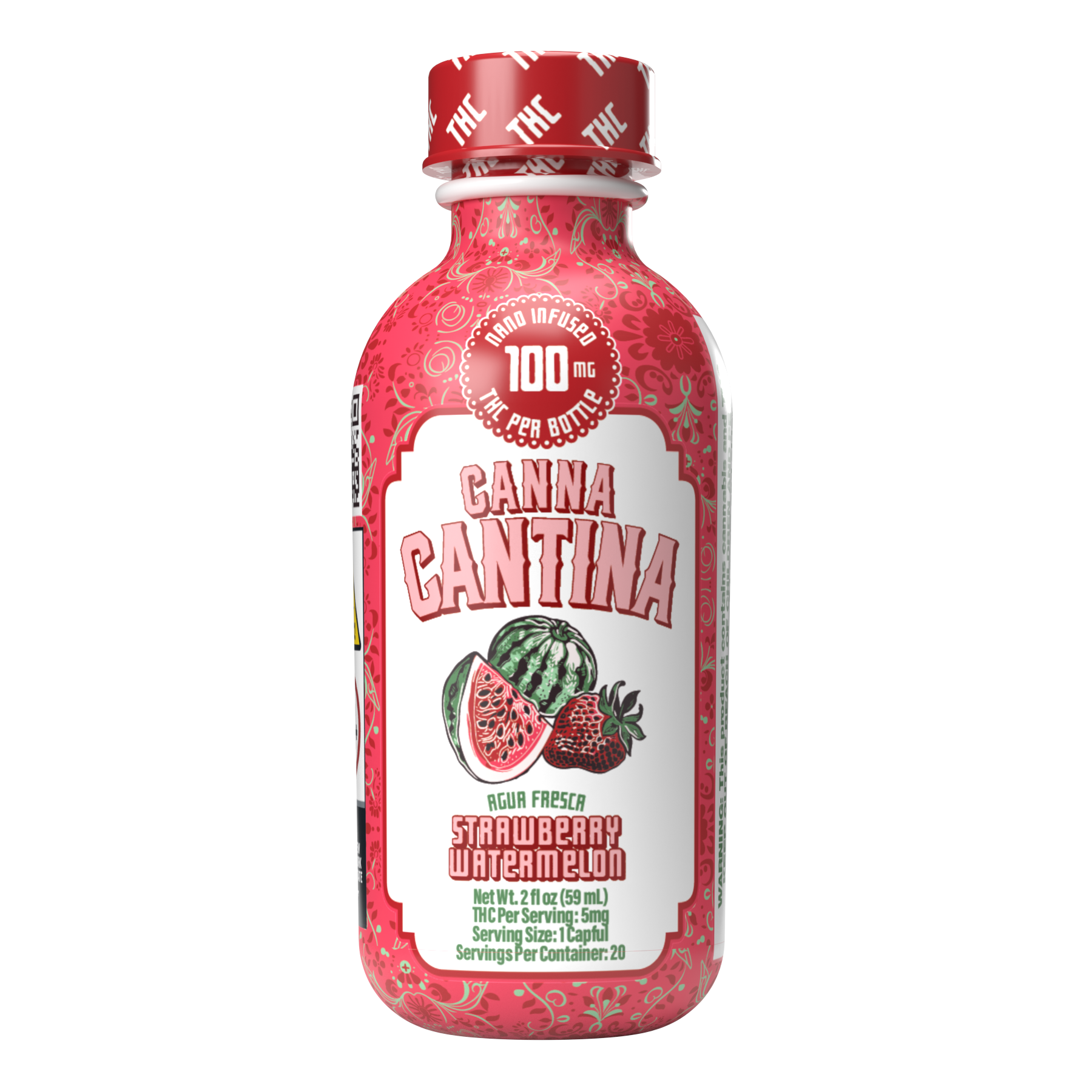 Canna Cantina’s Strawberry Watermelon agua fresca is the perfect mix of sweet and refreshing, like a bite of juicy fresh fruit on a summer afternoon. Each Canna Cantina delivers 100mg of nano-emulsified THC in a 2oz bottle. Whether you're looking to unwind or elevate the moment, Canna Cantina delivers a fiesta in every bottle