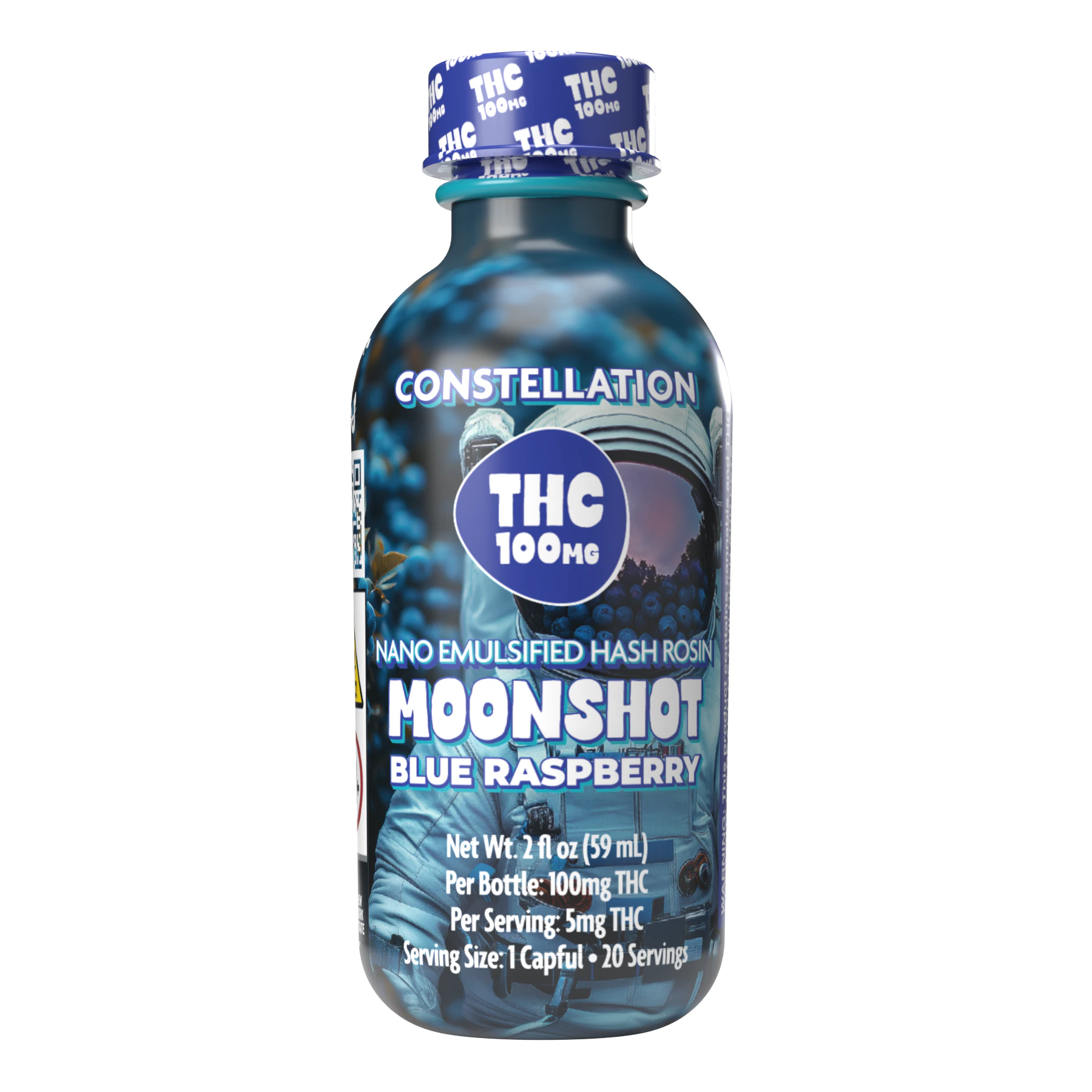 Constellation’s Blue Raspberry Moonshot is a supernova of berry flavor for those who appreciate the tried and true classics. Crafted with 100mg of nano-emulsified hash rosin, the effects hit fast, so you chill, sip, and launch into orbit