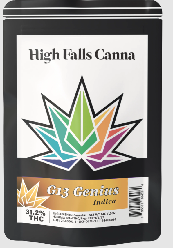 Known as a top-secret government-developed strain, G13 Genius has built its reputation on pure potency and unmistakable flavor. Loud, cheesy funk hits first, backed by earthy depth and a lingering skunkiness. The high comes on heavy, delivering a calming euphoria before melting into deep, full-body sedation. Powerful and long-lasting, G13 Genius is a go-to for sleep, chronic pain, and true end-of-day relief.