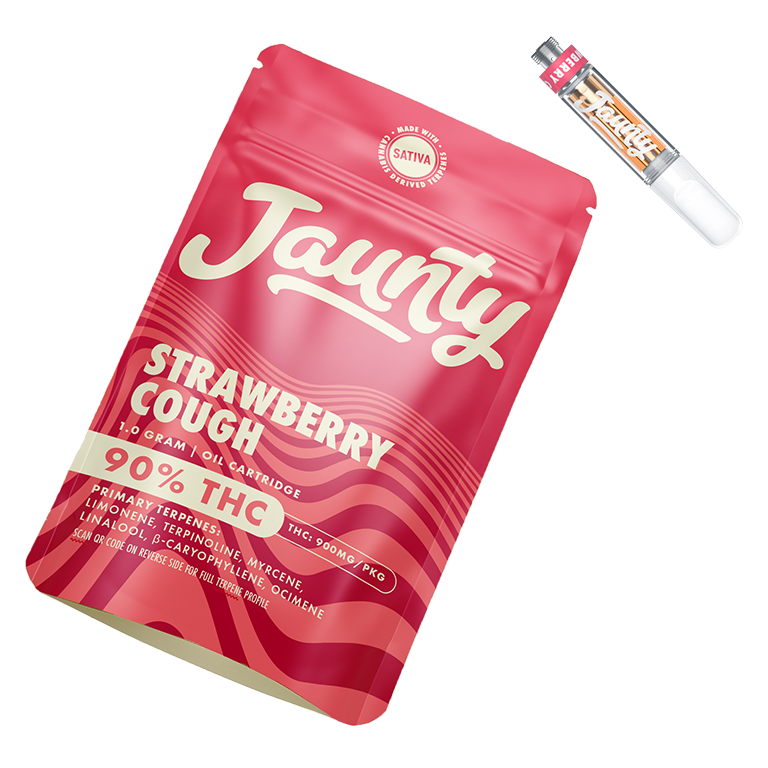 Strawberry Cough is a vibrant sativa celebrated for its sweet, strawberry aroma. Its uplifting and cerebral effects spark creativity and inspiration – the perfect companion for your next jaunt. Jaunty’s classic 510-thread vape cartridges combine proprietary blends of cannabis-derived terpenes with CO2-extracted cannabis oil, delivering true-to-strain flavors and effects-based profiles.