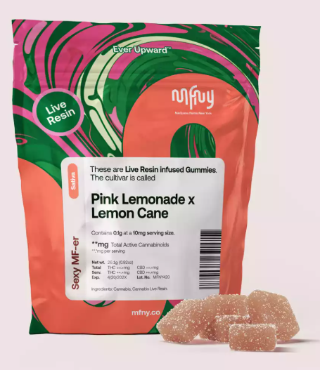 Terpene-rich edibles at an even tastier price. Introducing our live resin Pink Lemonade x Lemon Cane gummies. These vegan gummies are infused with MFNY’s single-source, in-house produced Lemon Cane live resin. We start with fresh-frozen flower buds, then use the hydrocarbon extraction method (plus years of experience and scientific precision) to deliver the purest plant extract. An extract that showcases the cultivar's naturally-produced, full-spectrum cannabinoids and remarkable natural terpenes. Lemon Cane is known for its spicy pineapple flavor. To complement the Lemon Cane cultivar, we add the minimum amount of sugar and Pink Lemonade flavors.