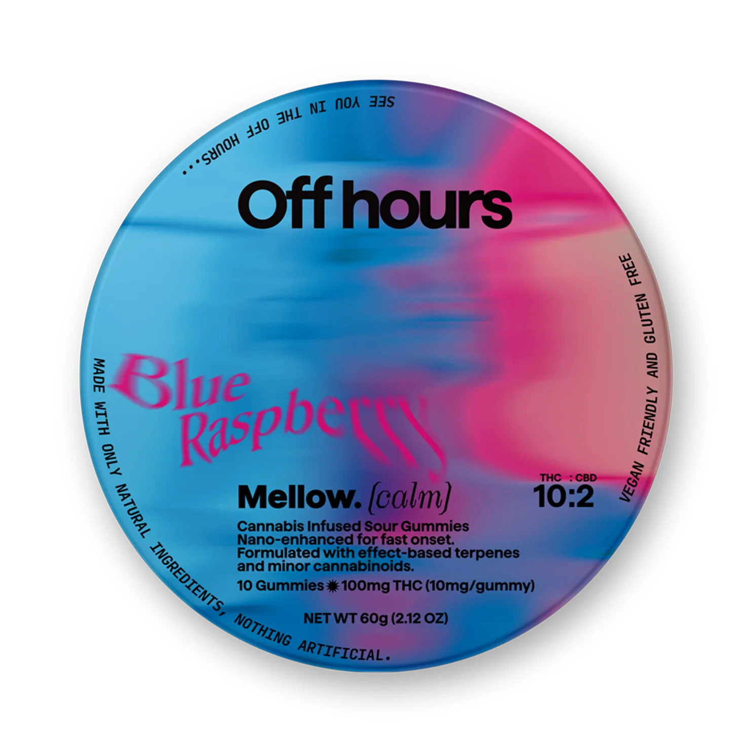 Indulge in the perfect balance of relaxation and euphoria with Off Hours' Mellow Gummies. These delectable blue raspberry-flavored treats are expertly crafted to deliver a smooth chilled-out high that's ideal for unwinding after a long day. Each package contains 100mg of THC divided into 10 precisely dosed gummies for easy consumption and consistent effects.Utilizing advanced nano-enhanced technology these gummies offer a faster onset time compared to traditional edibles allowing you to feel the effects more quickly. The unique combination of THC and CBD creates a harmonious blend that promotes a sense of calm and tranquility without overwhelming sedation.Vegan-friendly and gluten-free Off Hours Mellow Gummies cater to a wide range of dietary preferences and restrictions. The natural high-quality ingredients ensure a pure and enjoyable cannabis experience free from unnecessary additives or allergens.Whether you're a seasoned cannabis enthusiast or new to edibles these gummies provide a reliable and delightful way to explore the benefits of THC and CBD. Available at Happy Munkey your trusted cannabis dispensary in Manhattan NYC these gummies are perfect for residents of Inwood Fort George Marble Hill Hudson Heights and Washington Heights looking for premium cannabis products near them.Experience the convenience and discretion of Off Hours Mellow Gummies and discover why Happy Munkey is the go-to marijuana store for discerning cannabis consumers in New York City.