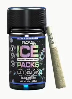 Rove Ice Packs prerolls, the world’s first triple-infused preroll. Made with premium-grade flower fully-infused with THCA diamonds and solventless ice hash rosin, expertly rolled and coated in more ice hash. Super smooth and ultra potent, Rove Ice Packs test up to 50% THC. Welcome to the next evolution of prerolls.
