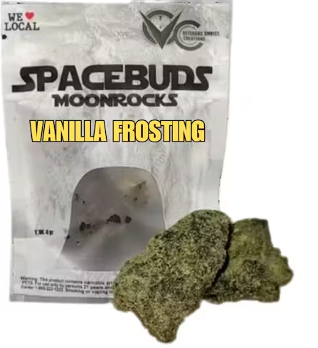 Launch into a creamy cosmic adventure with Spacebuds Moonrocks - Vanilla Frosting! These interstellar Moonrocks are infused with hash rosin and bubble hash for a powerful, flavorful boost. Coated in powdered kief, they capture the silky essence of vanilla frosting while delivering calming, euphoric, and uplifting effects. Let the craftsmanship of Veterans Choice Creations take you on a journey of bliss, one puff at a time.